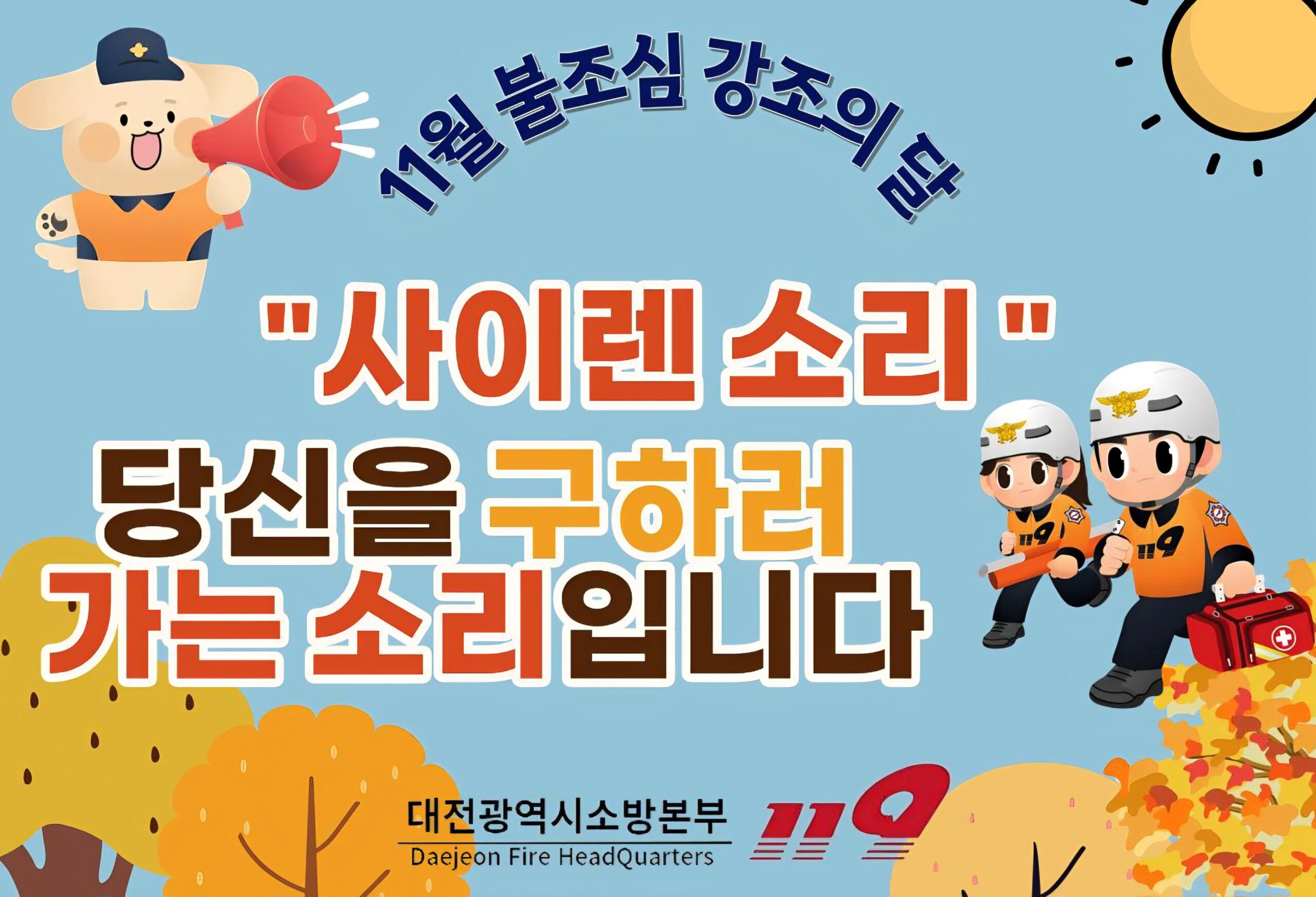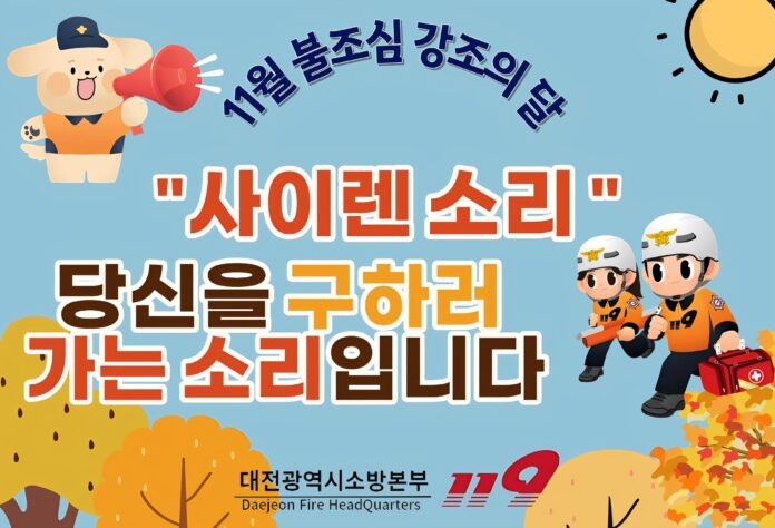 대전소방본부(본부장 김문용)는 11월 한 달 동안 ‘불조심 강조의 달’을 운영하며 시민과 함께하는 화재예방 실천 분위기 확산에 나선다.