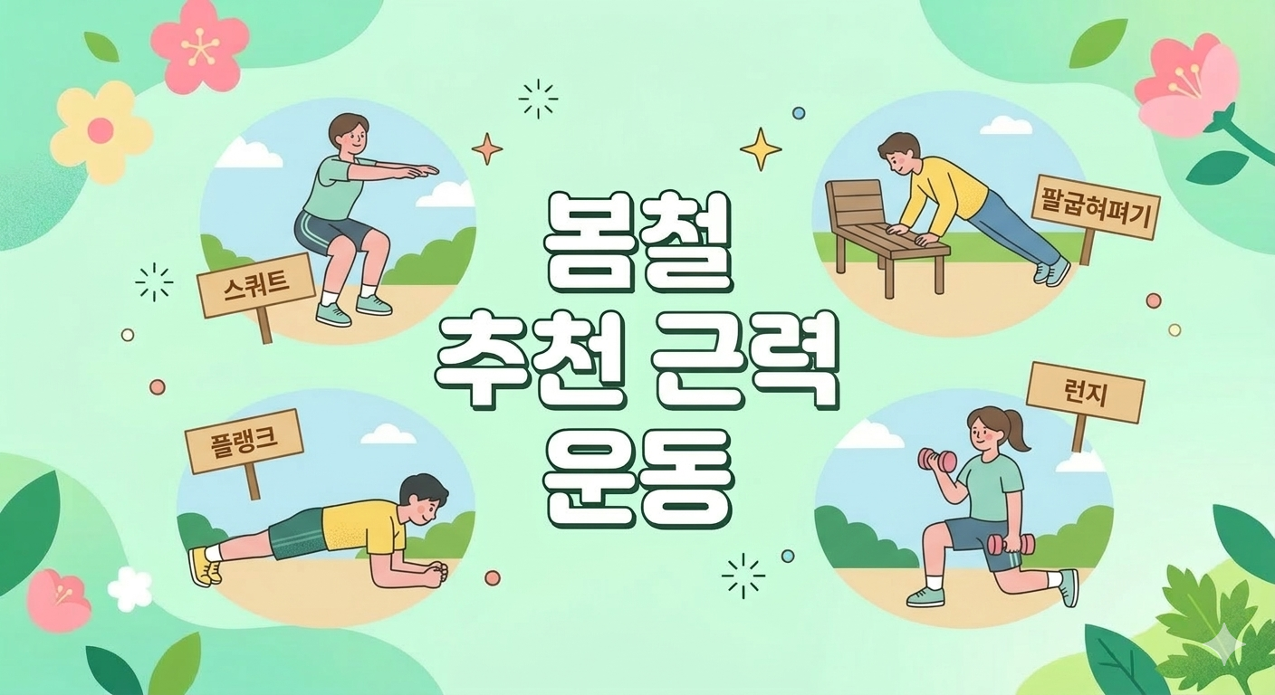 봄철 근력 운동의 핵심은 **’조급해하지 않는 것’**입니다. 겨울 동안 근육이 위축되어 있으므로, 처음부터 무거운 기구를 들기보다는 맨몸이나 가벼운 덤벨로 시작하여 올바른 자세를 익히는 것이 부상을 막는 길입니다.